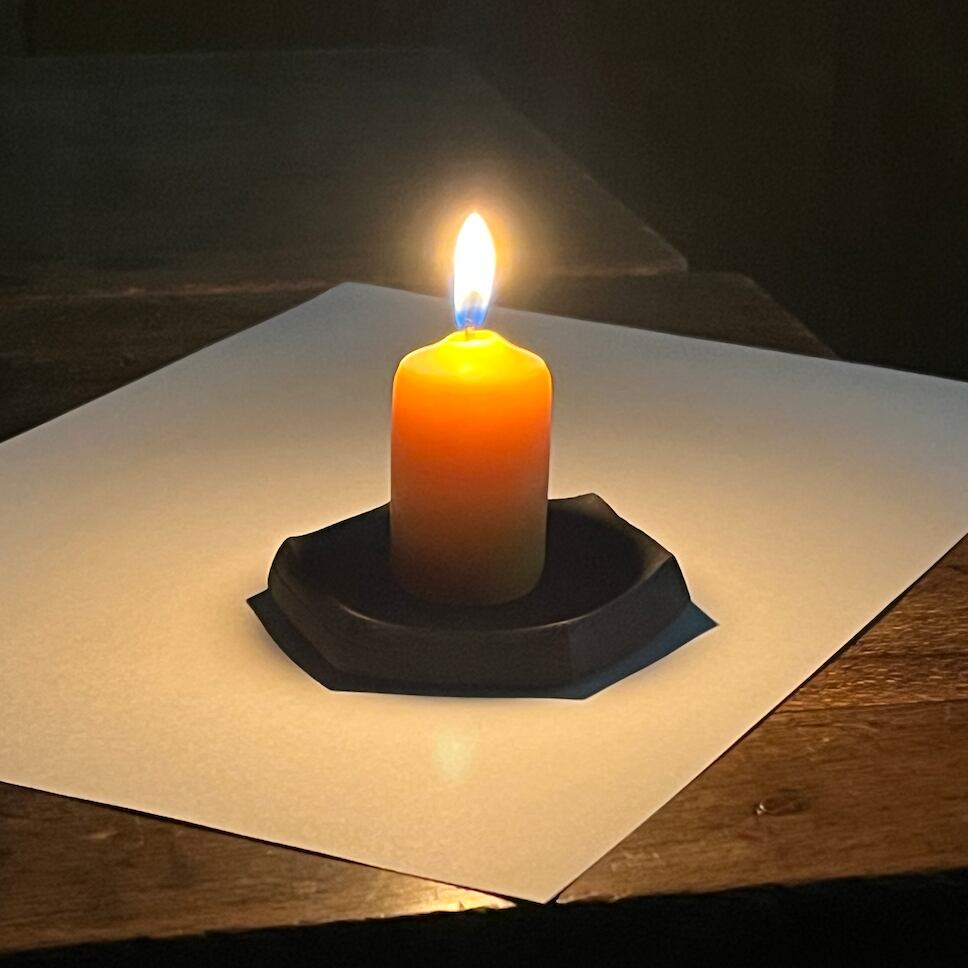 陶工 安藤玄太(愚息)の作品とコラボ。釉薬を使わない黒焼きしめの自然な色合いが、蜜蝋の色を惹き出してくれます。シンプルが人気のストレート30×50mmキャンドル2本とセットにしました。残ろうを楽しむ再利用灯芯も1本お入れいたします。