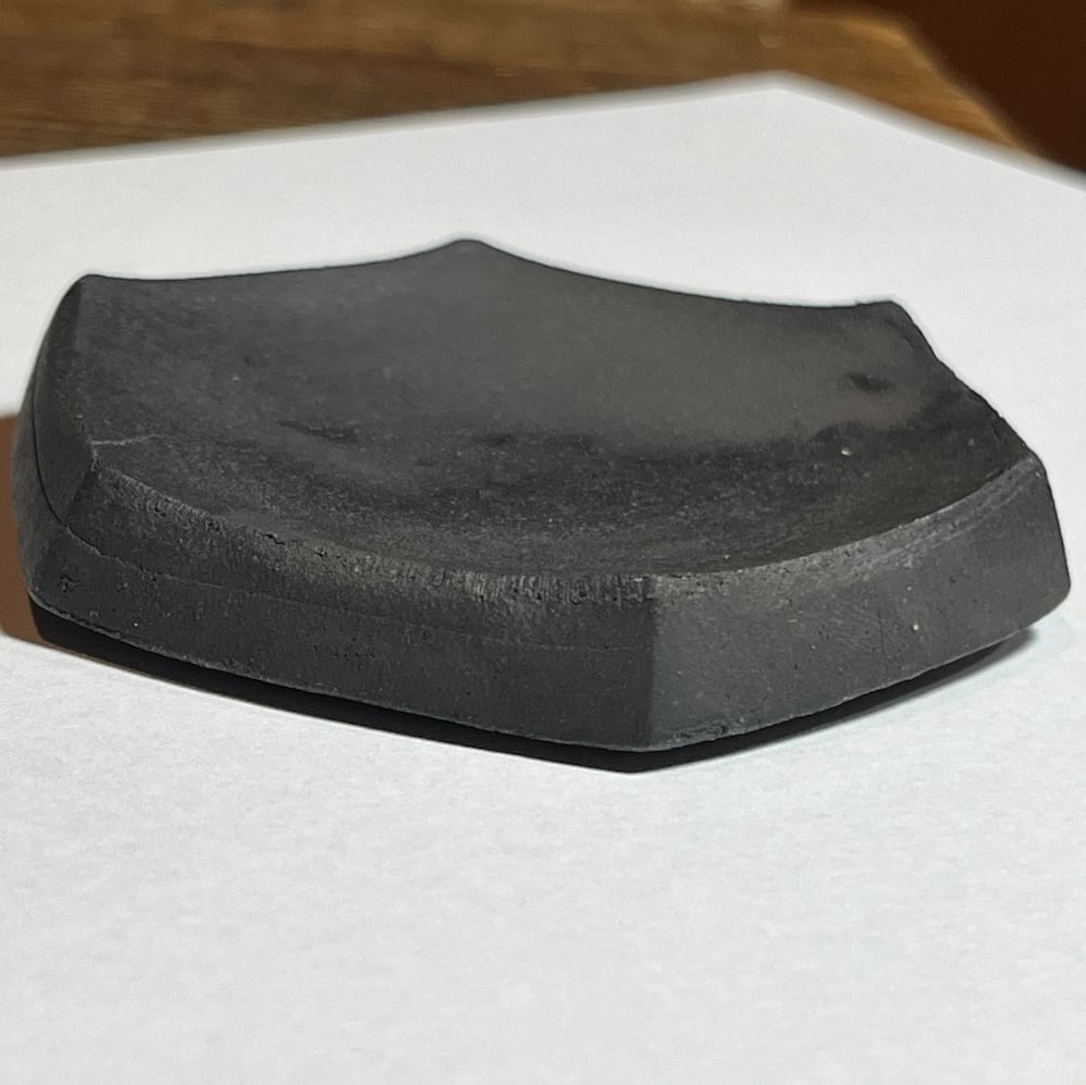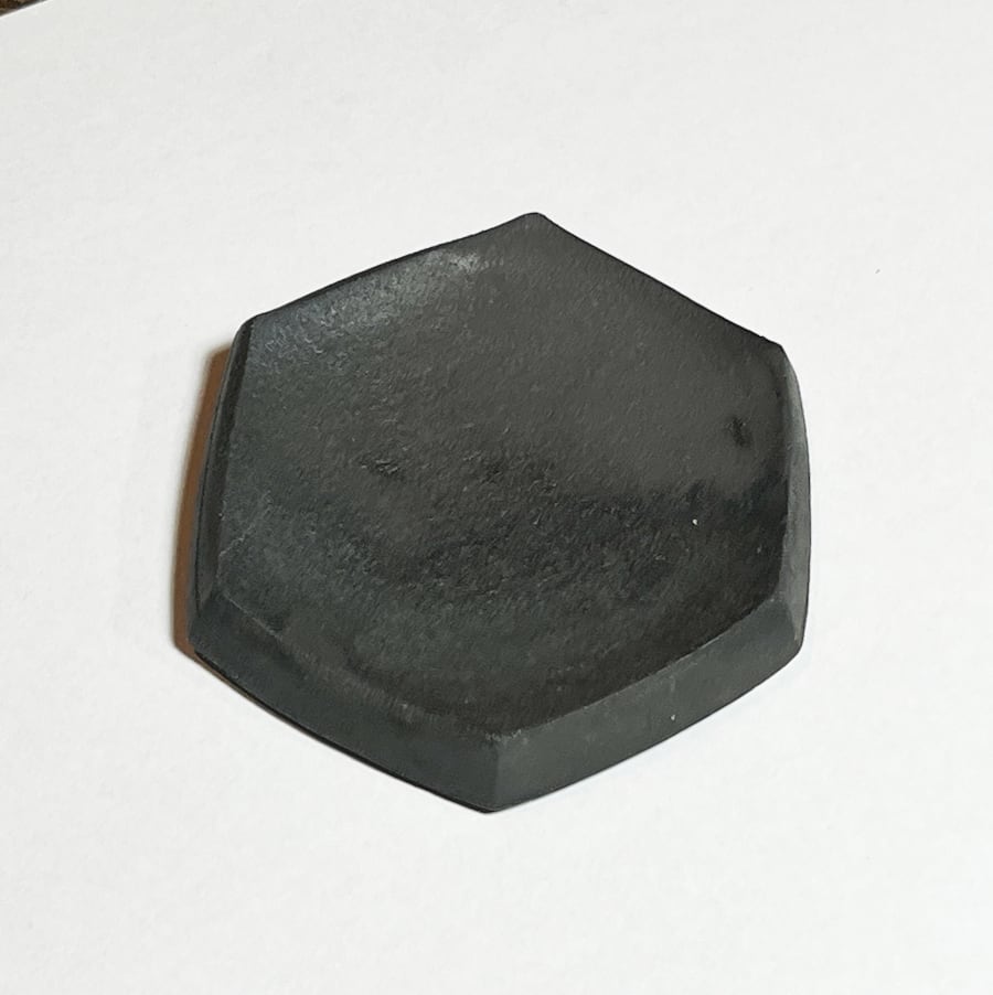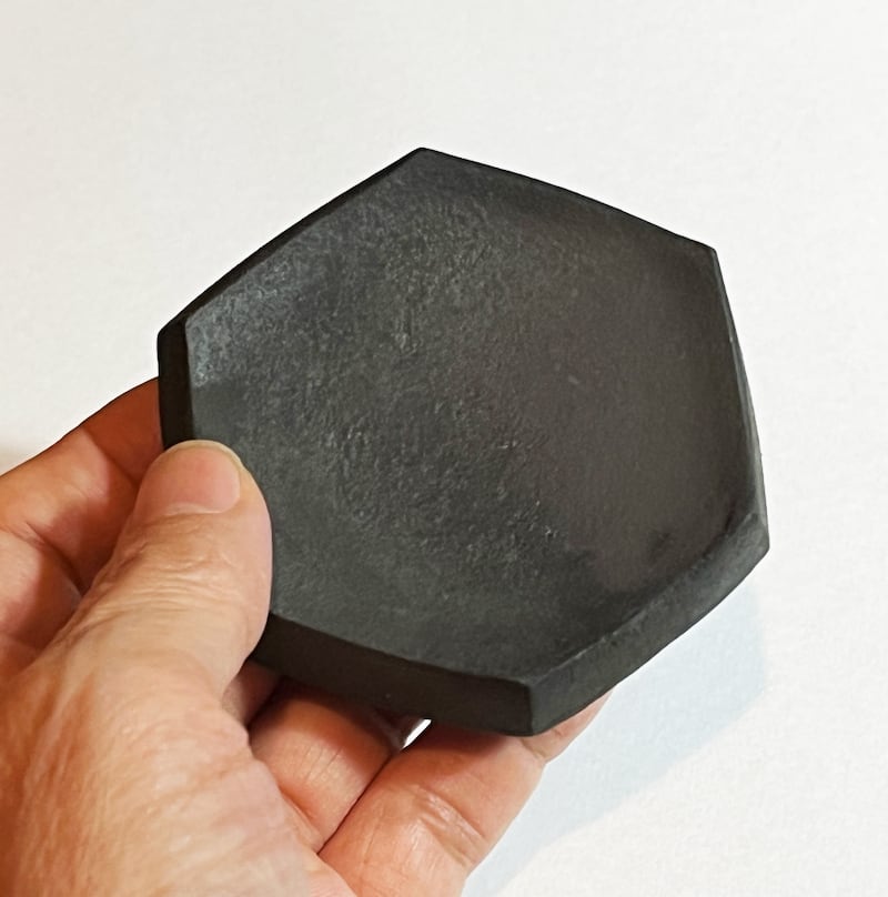 ■六角皿燭台 黒焼き〆 サイズ: 皿直径 8cm、高さ1cm 価格1650円(税込)