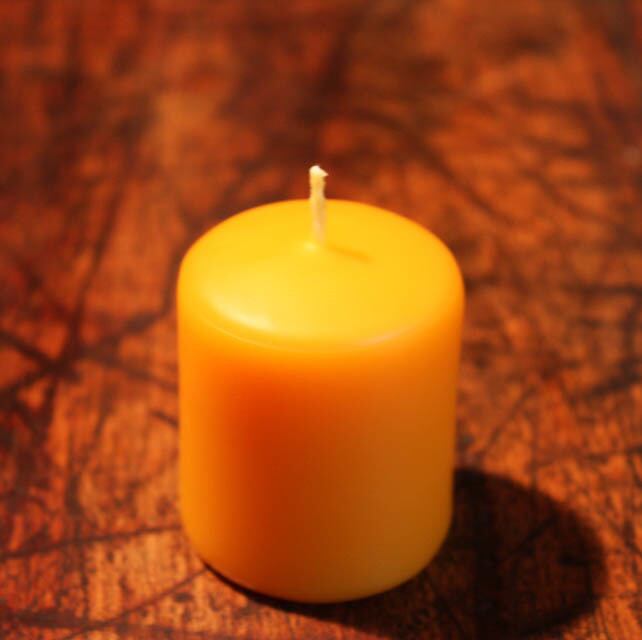 写真の色と異なる場合がありますが、きれいな黄色またはオレンジ色の蜜ろうで製作しています。ただ、天然色のため時間とともに退色します。お早めにお使いください。