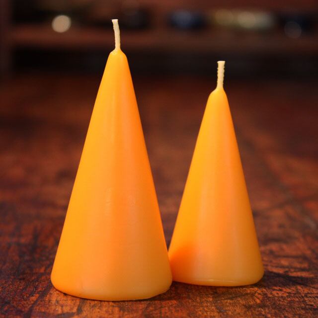 写真の色と異なる場合がありますが、きれいな黄色またはオレンジ色の蜜ろうで製作しています。ただ、天然色のため時間とともに退色します。お早めにお使いください。