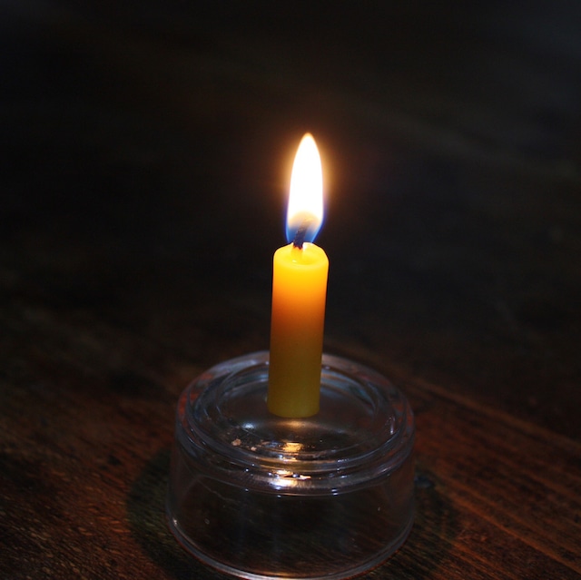 30分灯る人気のキャンドルです。小さいけれど力強い明かりが灯りかわいらしいです。お客様から「ワインで晩酌する時に」とか「毎晩30分、蜜ろうの明かりを楽しむ時間を作っている」とお聞きしました。特に「最後の火が消える瞬間(灯消えんとして光を増す)を見られる」という感想には私も共感します。