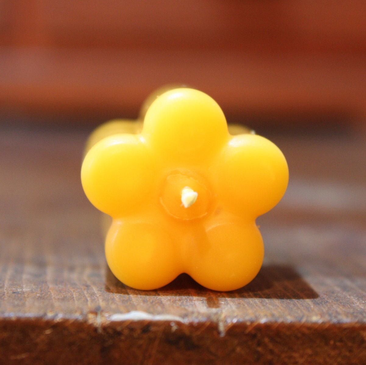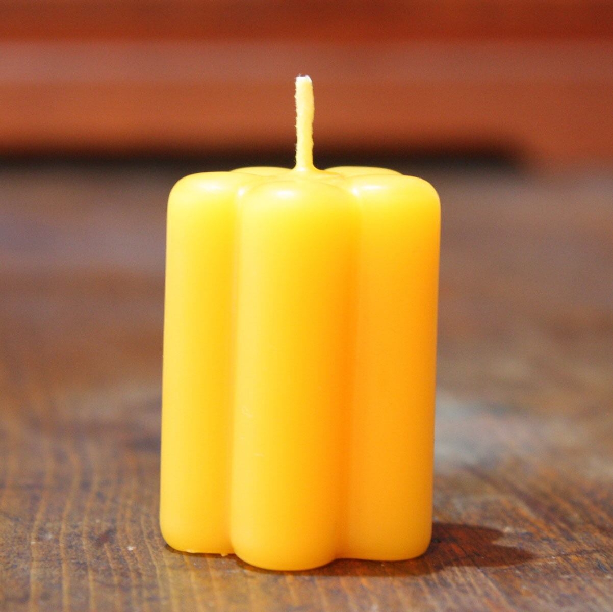 写真の色と異なる場合がありますが、きれいな黄色またはオレンジ色の蜜ろうで製作しています。ただ、天然色のため時間とともに退色します。お早めにお使いください。