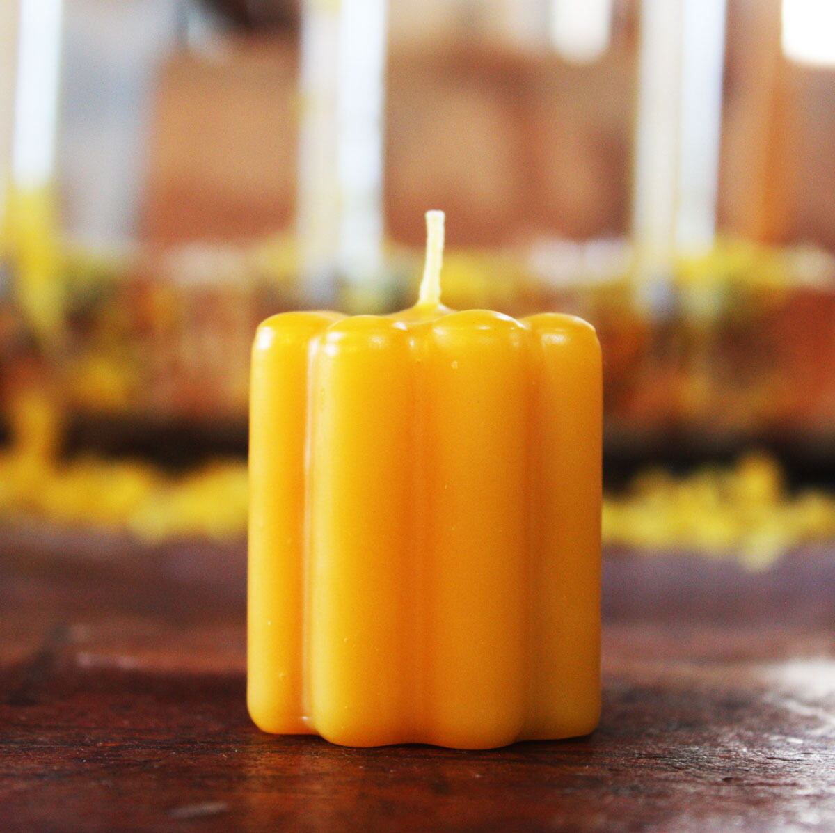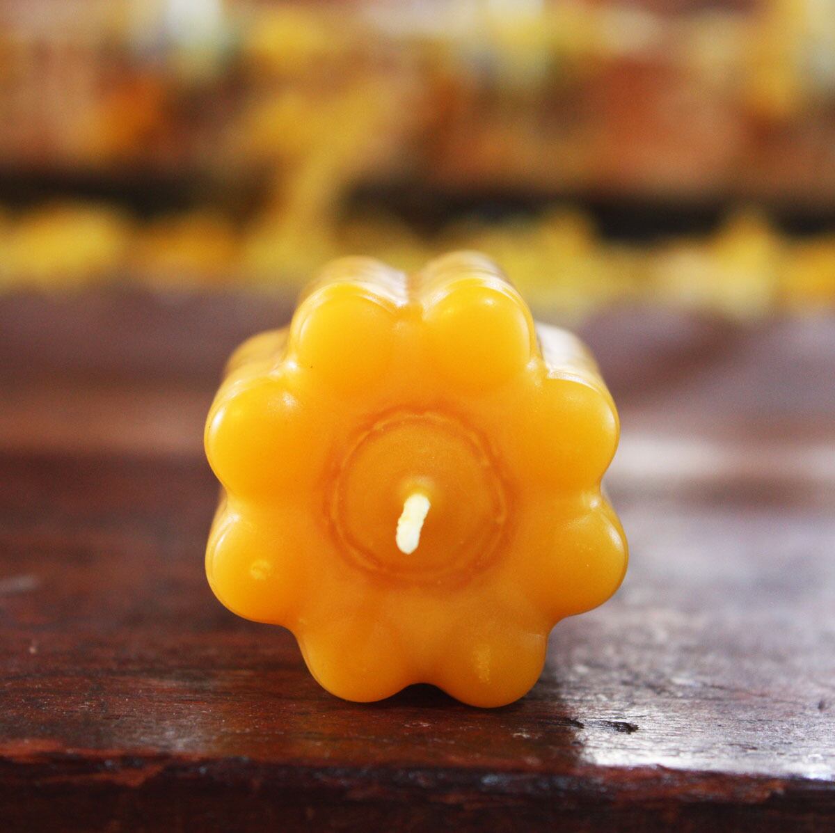 写真の色と異なる場合がありますが、きれいな黄色またはオレンジ色の蜜ろうで製作しています。ただ、天然色のため時間とともに退色します。お早めにお使いください。