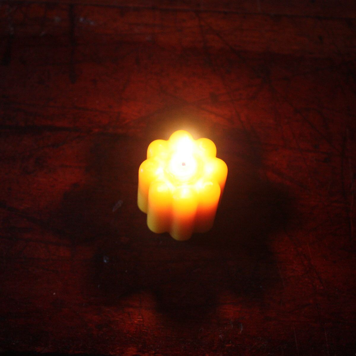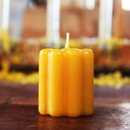 2020年春の新作です。ちょっと無理がありますが、ハチミツ酒のお話がある8枚花弁のアネモネのつもりで作りました(笑)。真ん中で灯るように芯を調整しながら灯すと、溶け口がひらひらと残り炎に透かされてきれいです。テーブルにも花のような影が現れます。円柱を9本くっつけてディップする方法で作りました。オススメの一品です。箱入れギフトにもできますのでご指定ください。