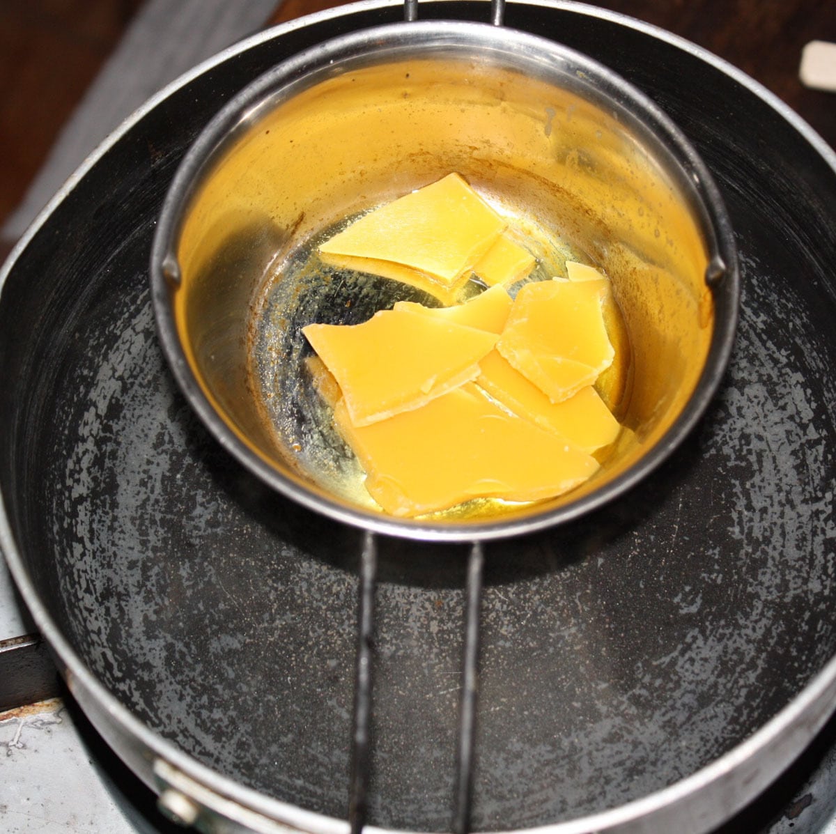 3.湯煎用ボールまたは小鍋に配合蜜ろうを入れて湯煎で溶かします。