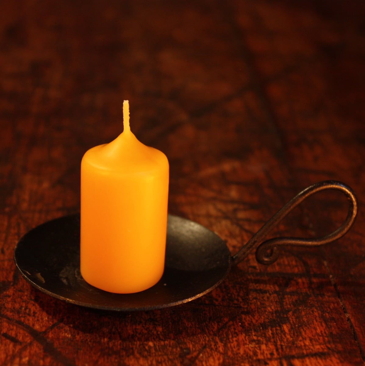 別売りのアイアン手燭にちょうどいいサイズにしました。流れづらい太さで溶け口も透けて見えてきれいです。